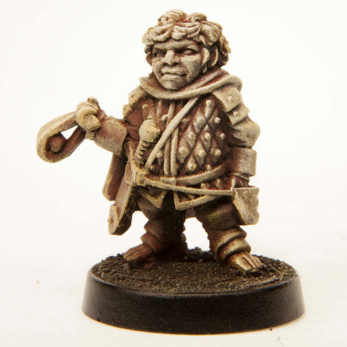 • This 21mm tall male Male Halfling Soldier with Sling has a great amount of detail for dungeon-crawling, RPGs and table top war games.