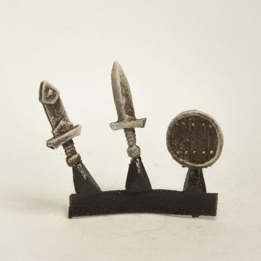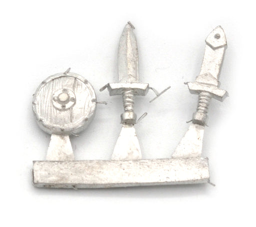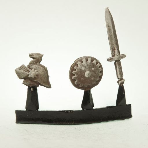 $7.99| /3 small pewter parts attached to a tab. Designed to enhance your tabletop role-playing and battle games. Includes the standard weapon and shield f...