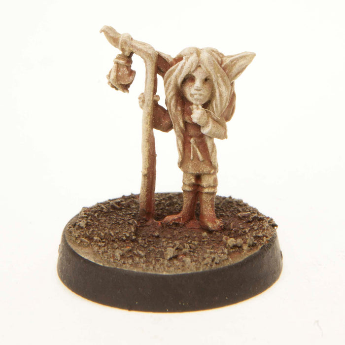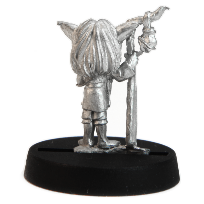 • Miniature could be used as a Young Mage, Young Wizard, Lost child, Sprite, Waif, Civilian. This Gnome Girl is equipped with staff, robes, and boots .