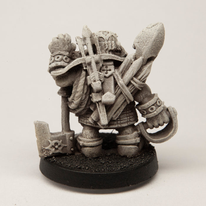 - Miniature could be used as a ranger, trapper, rogue, fighter, or sabateur. This Dwarf is equipped with leather armor, bear trap, shovel, punji sticks, heavy crossbow, axe, flask, belt pouch, dagger, spiked chain, rope, and kilt.
