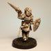 • Miniature could be used as a fighter, warrior, paladin, cavalier, or soldier. This human female is equipped with a sword, a shield, heavy armor, a dagger, and a small pouch.