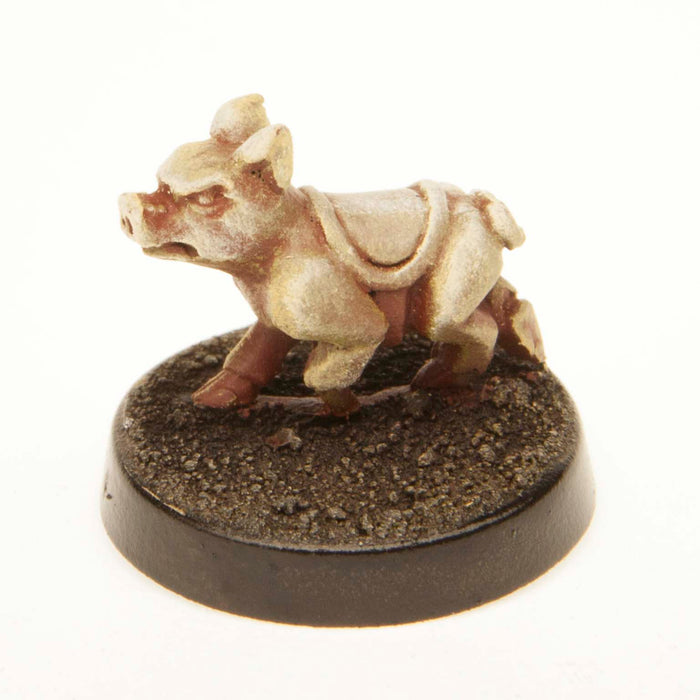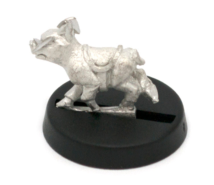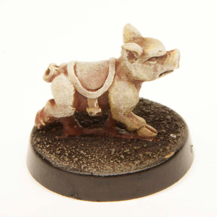 This 11mm tall Tiny Pig with Saddle has a great amount of detail for dungeon-crawling, RPGs and table top war games. Miniature could be used as a Pig, Pet, Companion, Bacon, Ham, Sausage, Pork Chops. This Tiny Pig with Saddle is equipped with a saddle, and hooves in stride. 20mm diameter slotted round plastic base included. Figure is made of 100% lead free pewter.