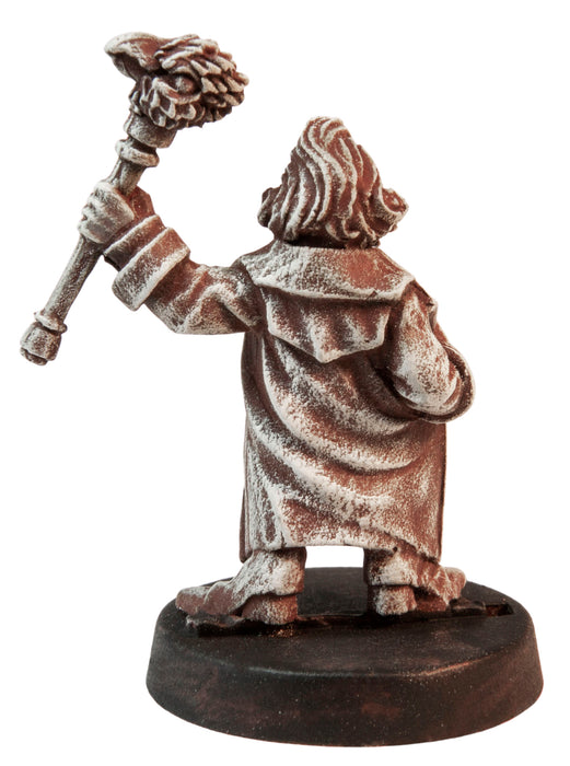 Male Halfling Trickster halfling or gnome figure designed for dungeon-crawling, RPGs and 28mm table top war games. Figure stands 32mm tall (20mm from feet to eyes) and features an incredible amount of detail. Miniature could be used as a Bard, Rogue, Thief, Wizard, Vigilante, Aristocrat, Civilian. Made of 100% lead free pewter.