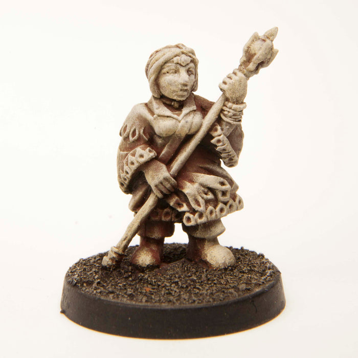 • This 25mm tall female Dwarf Mage has a great amount of detail for dungeon-crawling, RPGs and table top war games.