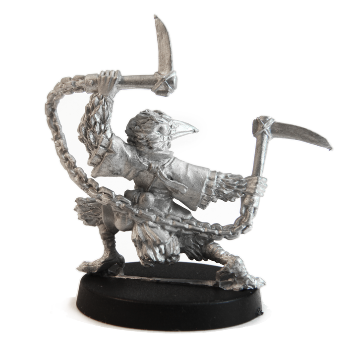 This 33mm tall male Tengu Assassin has a great amount of detail for dungeon-crawling, RPGs and table top war games. Miniature could be used as a Kenku, Shrike, Avian, warrior, Assassin, . This Tengu Assassin is equipped with robes, and chain linked pick axes. 25mm diameter slotted round plastic base included. Figure is made of 100% lead free pewter.