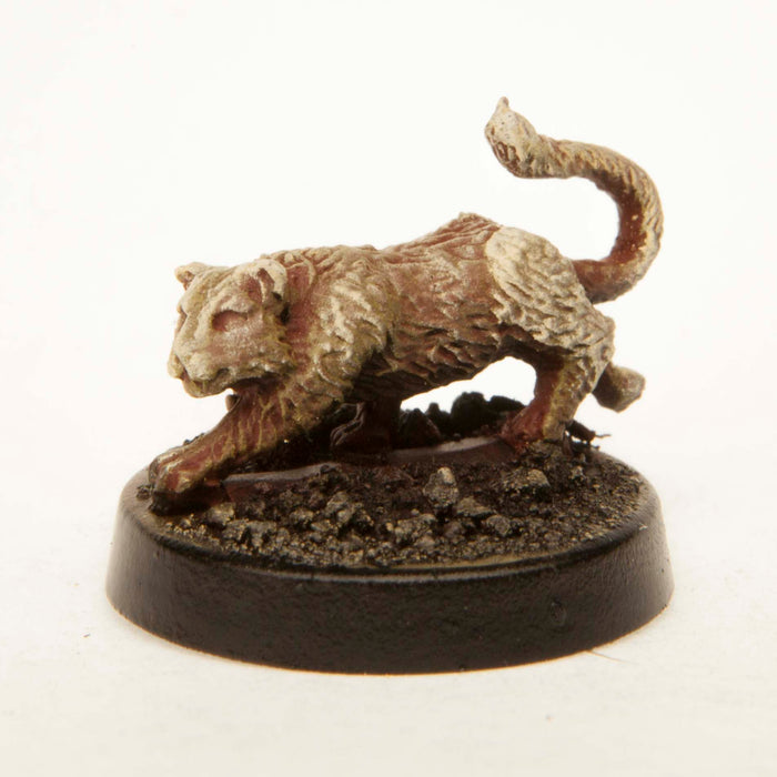 This 14mm tall Cat has a great amount of detail for dungeon-crawling, RPGs and table top war games. Miniature could be used as a Pet, Familiar, Shape-Shifter, Tibbit, Companion. This Cat is equipped with a body full of fur and paws with sharp razor claws. . 20mm diameter slotted round plastic base included. Figure is made of 100% lead free pewter.