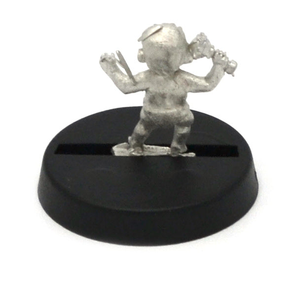 This 15mm tall Dwarf Baby has a great amount of detail for dungeon-crawling, RPGs and table top war games. Miniature could be used as a Child, Tiny Berserker, Objective marker. This Dwarf Baby is equipped with a rattle or Mace and diaper. 20mm diameter slotted round plastic base included. Figure is made of 100% lead free pewter.