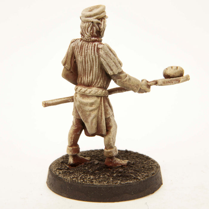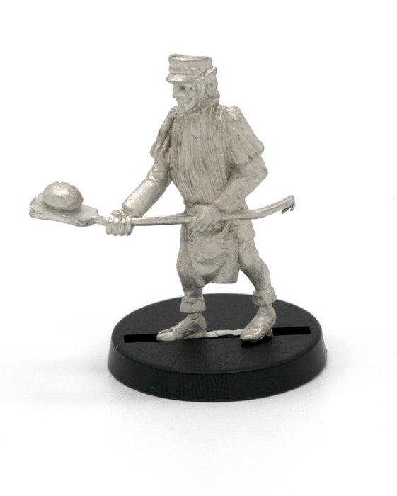 • Miniature could be used as a Baker, Civilian, Townspeople, Elf. This Elf Baker is equipped with baker's Peel, apron, baker's hat, round loaf of bread.