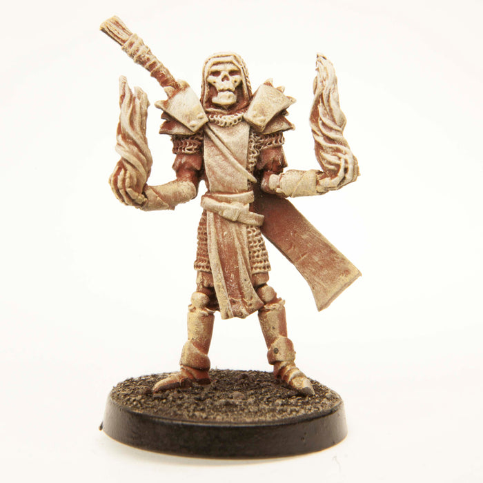• Miniature could be used as a Undead Mage, Wizard, Sorceress, Mystic, Element Master, Skeleton. This Elf Undead Mage is equipped with extra long clever, spike shoulder caulders, open hands with smoldering flames, and Full body protective chain mail under r