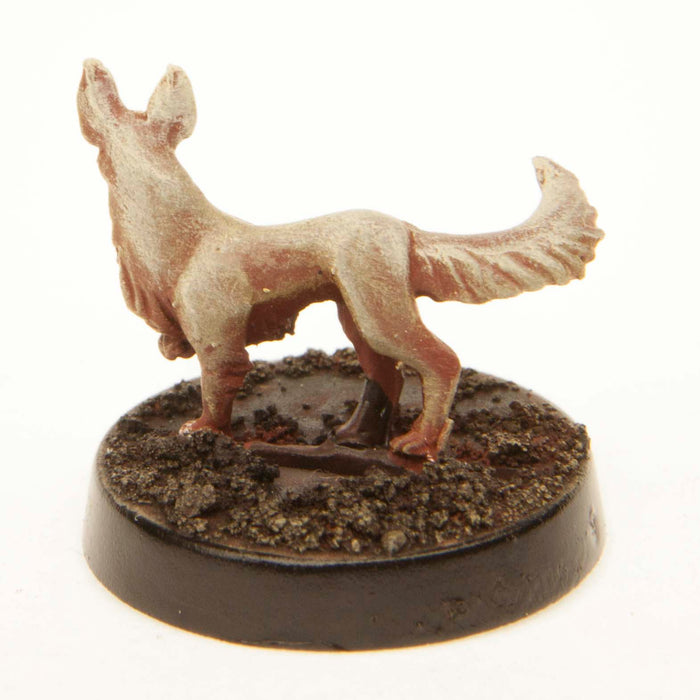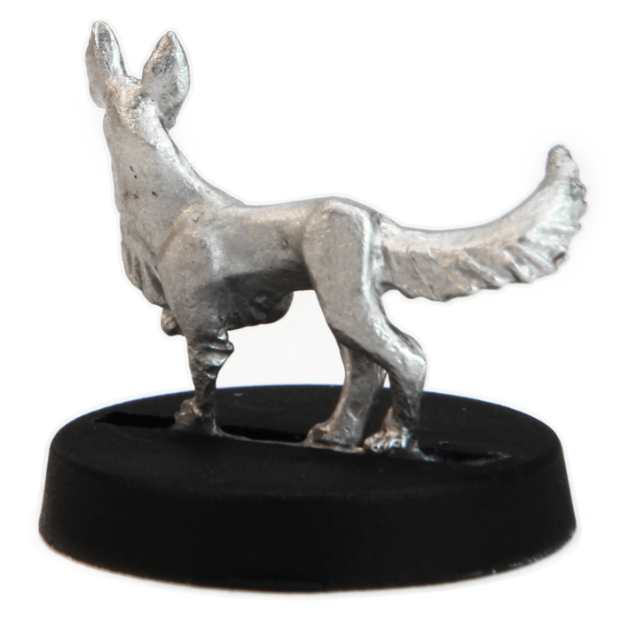 This 15mm tall Fox has a great amount of detail for dungeon-crawling, RPGs and table top war games. Miniature could be used as a Companion, Pet, Alternate form, Familiar, Predator . This Fox is equipped with one front leg up, pointy ears . 20mm diameter slotted round plastic base included. Figure is made of 100% lead free pewter.