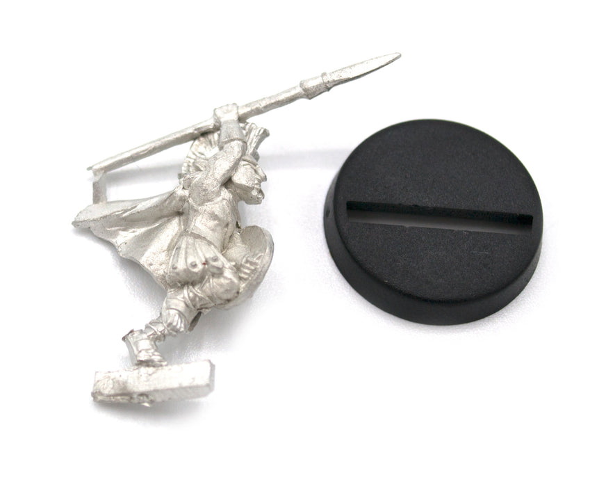 This 30mm tall male Gnome Hoplite has a great amount of detail for dungeon-crawling, RPGs and table top war games. Miniature could be used as a Warrior, Fighter, Soldier, Captain, Warlord, Gladiator. This Gnome Hoplite is equipped with gladiator heavy armor, spear, shield, cape, roman trooper helm . 20mm diameter slotted round plastic base included. Figure is made of 100% lead free pewter.