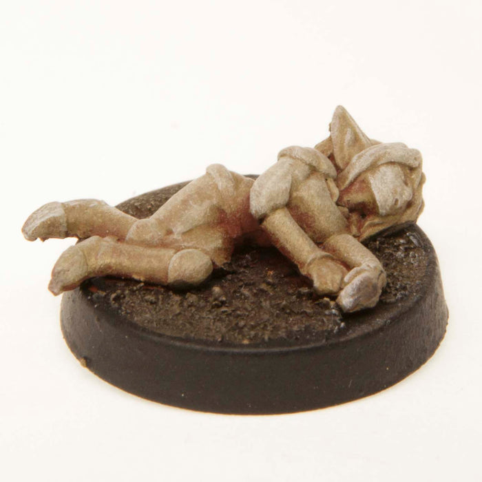 This 20mm tall male Gnome Unconscious has a great amount of detail for dungeon-crawling, RPGs and table top war games. Miniature could be used as a Asleep, unconscious, fallen, prone...or dead- Sleeping Civilian, Drunken, Bum. This Gnome Unconscious is equipped with light armor and boots . 20mm diameter slotted round plastic base included. Figure is made of 100% lead free pewter.