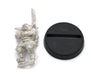 - Included with each mini is a slotted round plastic "creator" base. This base is not designed as a plug and play solution and requires some assembly and finishing (glue, putty, or other filler is recommended). Figure is made of 100% lead free pewter.