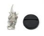 This 34mm tall male Gnome Warrior has a great amount of detail for dungeon-crawling, RPGs and table top war games. Miniature could be used as a Fighter, Berserker, Knight, Sergeant. This Gnome Warrior is equipped with a mechanical chain blade sword, chain mail, and full heavy armor. 20mm diameter slotted round plastic base included. Figure is made of 100% lead free pewter.