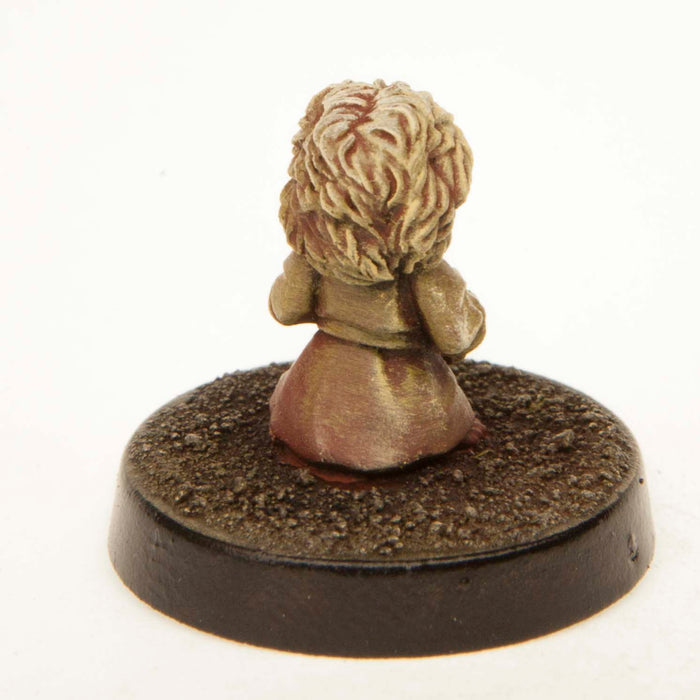 - Miniature could be used as a Child, Kid, Princess. This Halfling Girl is equipped with a satchel of goodies, and a dress .