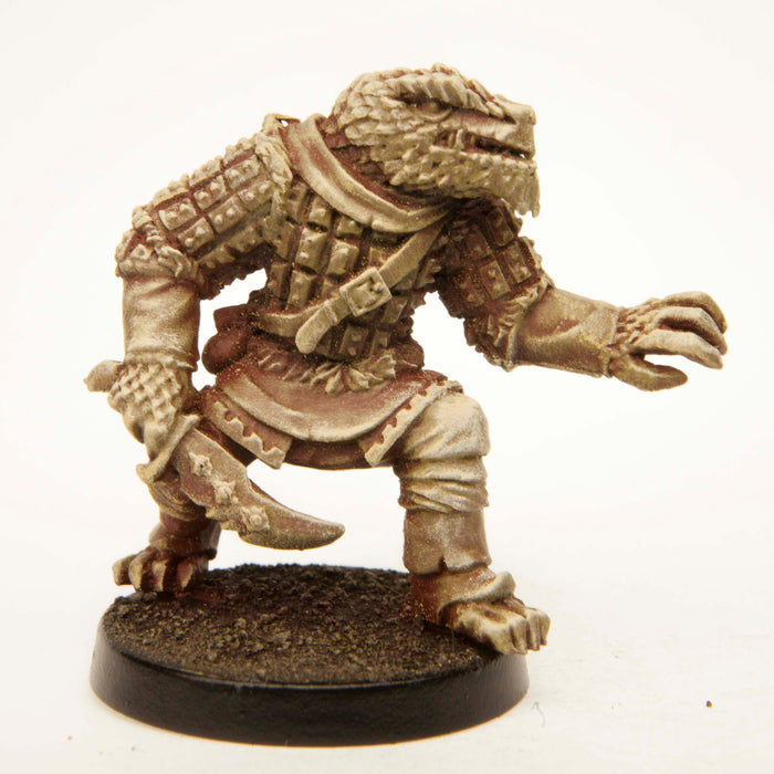 This 30mm tall male Half-Dragon Rogue has a great amount of detail for dungeon-crawling, RPGs and table top war games. Miniature could be used as a Rouge, Warrior, Assassin, Fighter, Spy, Thief. This Half-Dragon Rogue is equipped with scale armor, pouch, and ornate dagger. 25mm diameter slotted round plastic base included. Figure is made of 100% lead free pewter.