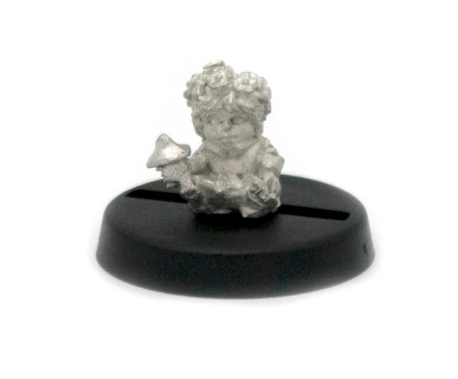 This 10mm tall female Halfling Baby has a great amount of detail for dungeon-crawling, RPGs and table top war games. Miniature could be used as a Child, Infant, Young adventurer, flashback. This Halfling Baby is equipped with a toddler dress and a mushroom . 20mm diameter slotted round plastic base included. Figure is made of 100% lead free pewter.