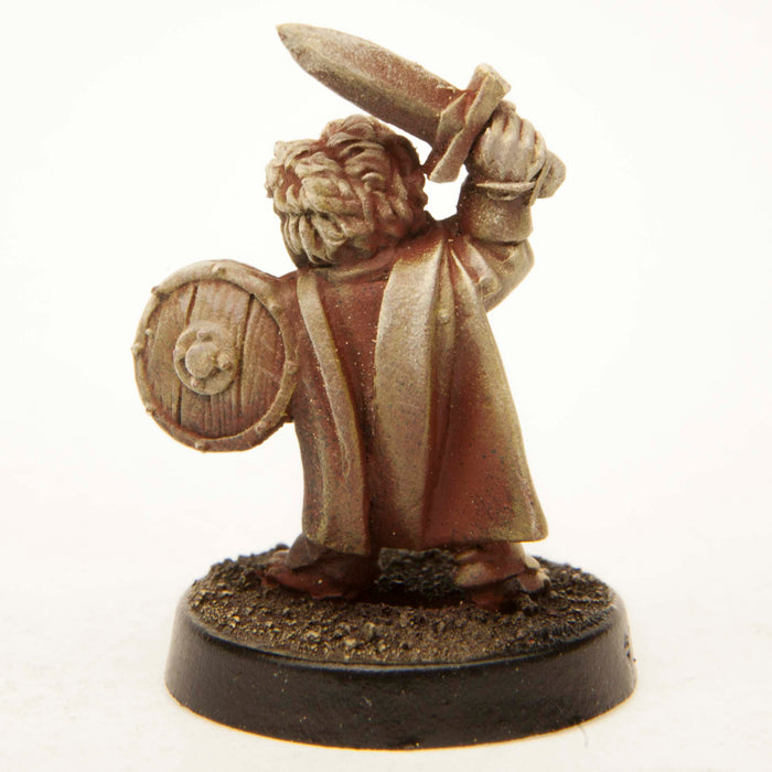 - Miniature could be used as a Warrior, Guard, Infantry, Rogue, Thief, Fighter. This Halfling Soldier Cheering is equipped with a sword, shield, cloak, padded armor and his arm raised shouting to charge or for victory! .