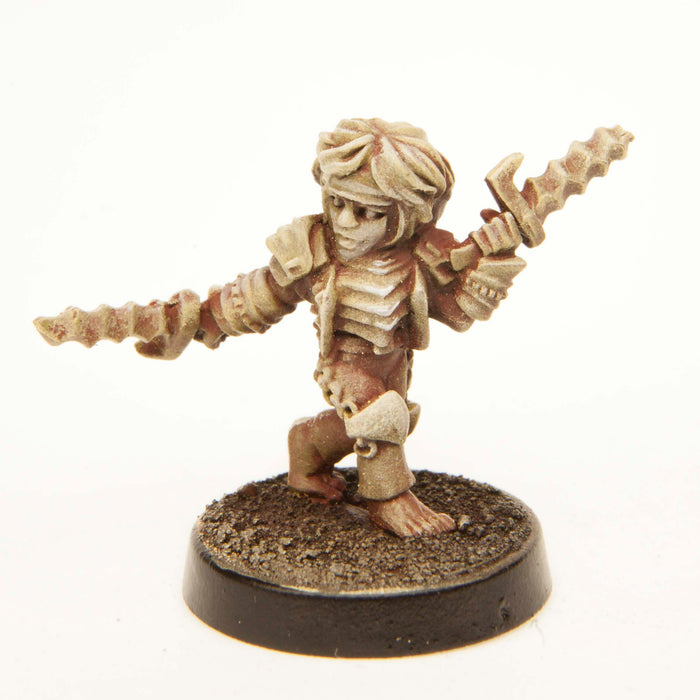 - Miniature could be used as a Rogue, Fighter, Bandit, Swashbuckler, Thief. This Halfling Thief is equipped with dual serrated daggers, and medium armor.