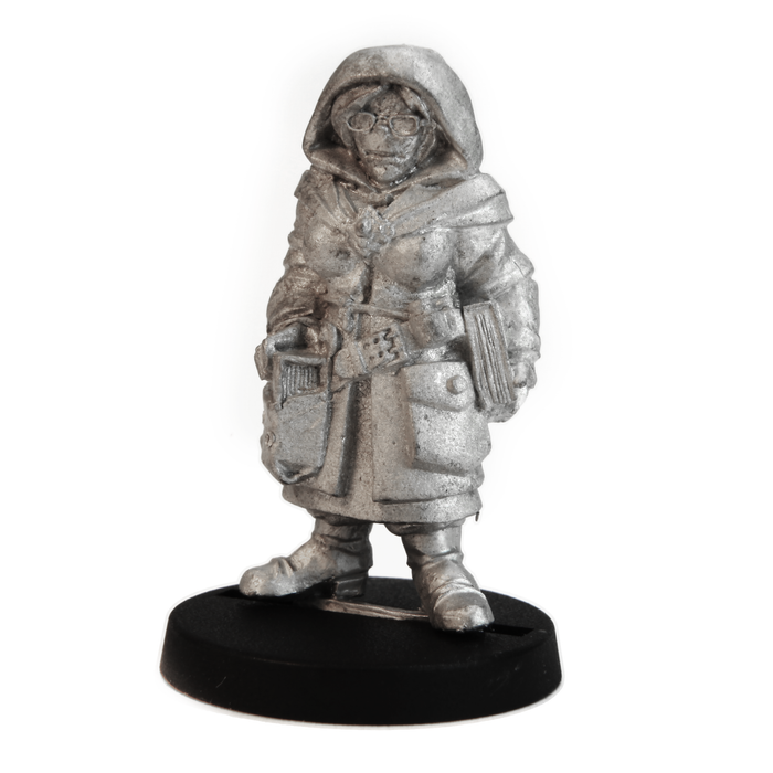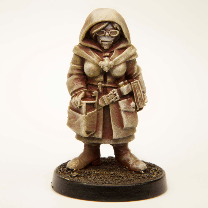 - Miniature could be used as a Scholar, Alchemist, Inquisitor, Witch, Investigator, Potion Maker, Civilian. This Half-Orc Librarian is equipped with glasses, hooded jacket, satchel with Vials and books , pouches, and amulet.