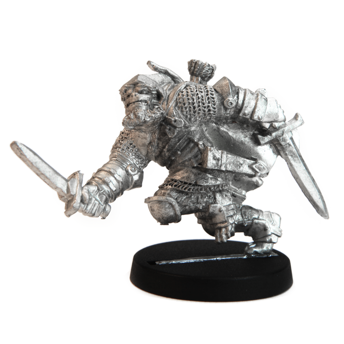 This 28mm tall male Half-Orc Ranger has a great amount of detail for dungeon-crawling, RPGs and table top war games. Miniature could be used as a Ranger, Hunter, Slayer, Avenger, Beast master, rouge, Swashbuckler. This Half - Orc is equipped with a chain mail armor, Dual wielding swords, Bow, Quiver full of arrows, hooded cloak. 25mm diameter slotted round plastic base included. Figure is made of 100% lead free pewter. Miniatures come unassembled and unpainted, some filing may be needed to clean up excess flashing, or sprue. The pictures of the painted miniatures are for inspiration and are only examples, these ship unpainted. Base tab on the miniature may be smaller than the slot in the provided base, some filing may be required.