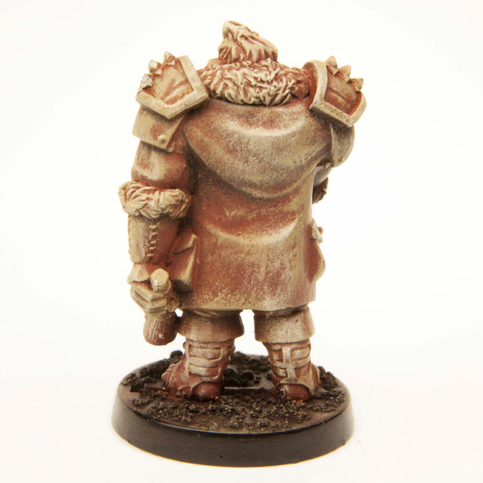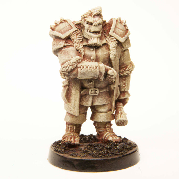 - Miniature could be used as a Rogue, Brawler, Investigator, Negotiator, Spy. This Half-Orc Strong-arm is equipped with club - blackjack, light armor, pistol (possibly, he's pulling something out of his coat) , long coat with fur around elbows and collar wi