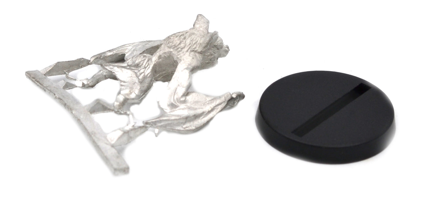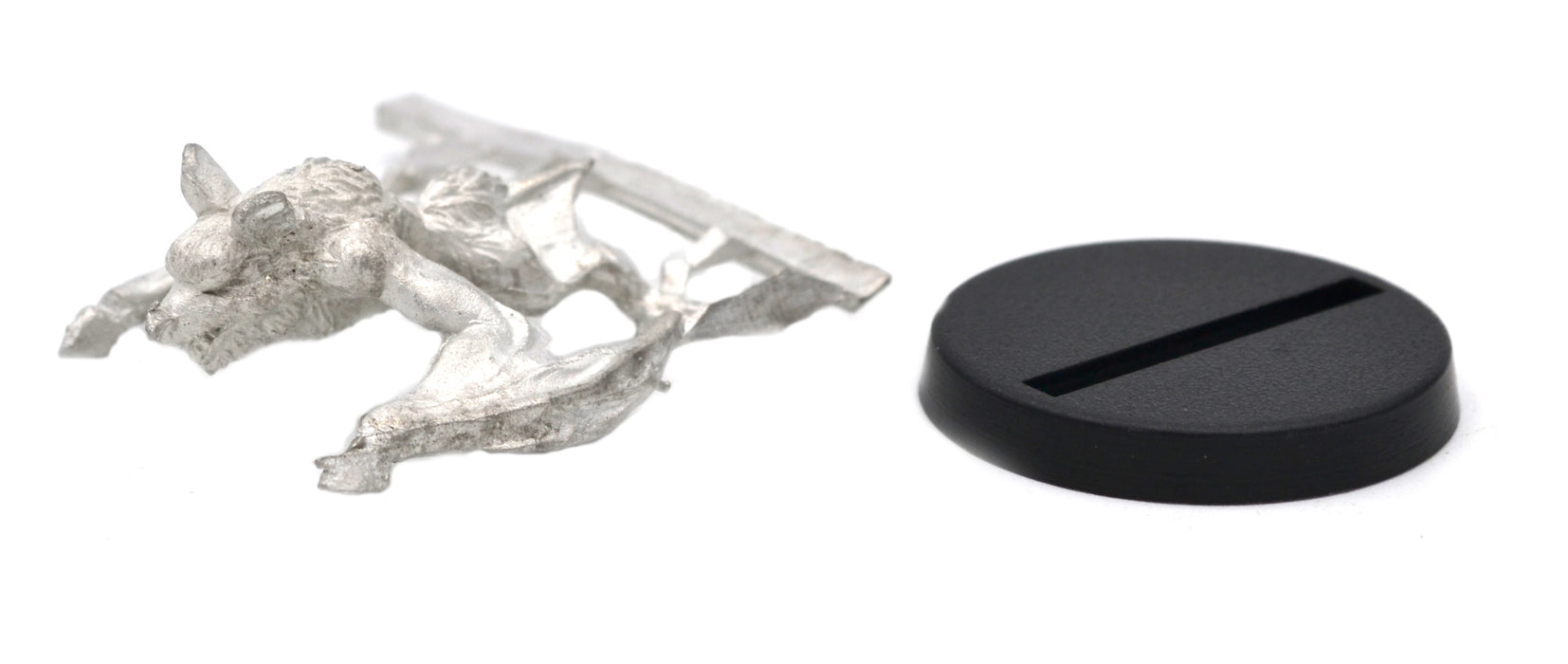 This 30mm long (15mm tall) Bat has a great amount of detail for dungeon-crawling, RPGs and table top war games. Miniature could be used as a Familiar, Companion, Giant Bat, or Pet. This miniature can be used as a mount and is compatible with the following Stonehaven Miniatures Riders: Gremlin Raider Rider, Grippli Spearman Rider, Grippli Knight Rider, Gnome Scout Rider, Gnome Knight Rider, Gnome Shrouded Batrider, Halfling Commander Rider, and Halfling Berserker Rider. 25mm diameter slotted round plastic base included. Made of 100% lead free pewter. The pictures of the painted miniatures are for inspiration and are only examples. Miniatures come unassembled and unpainted, some filing may be needed to clean up excess flashing, or sprue.