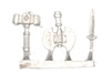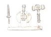 This Weapons collection includes a 19mm sword, an 18mm axe, and a 17mm Hammer and will add a bit of detail to dungeon crafting, dungeon-crawling, RPGs and table top war games. Miniature parts could be used in dungeon crafting, to represent rewards to players of tabletop RPGs, or to modify miniatures to add additional weapons/gear. No base included. Parts are made of 100% lead free pewter. The pictures of the painted miniatures are for inspiration and are only examples. Miniatures come unassembled and unpainted, some filing may be needed to clean up excess flashing, or sprue.