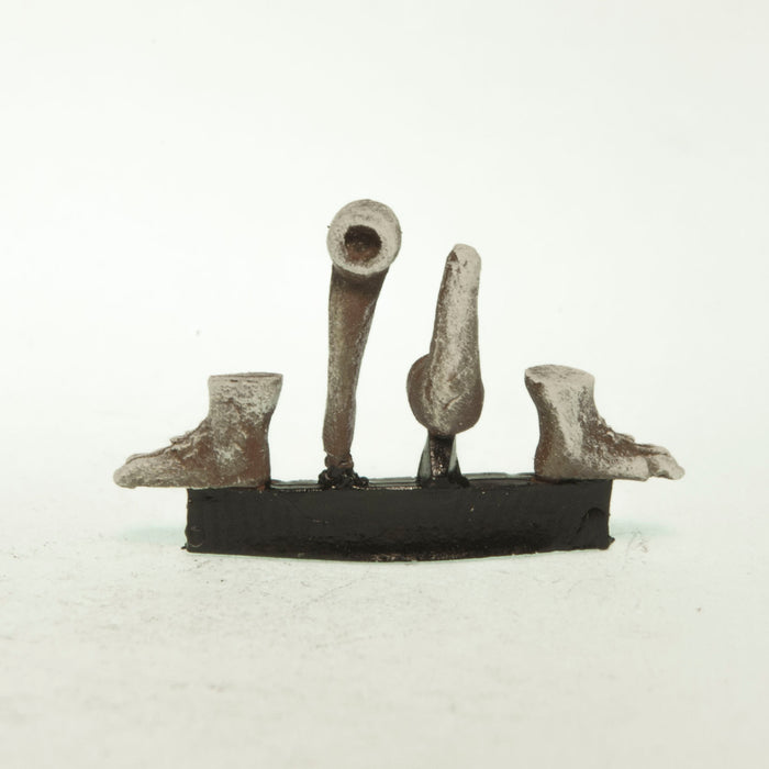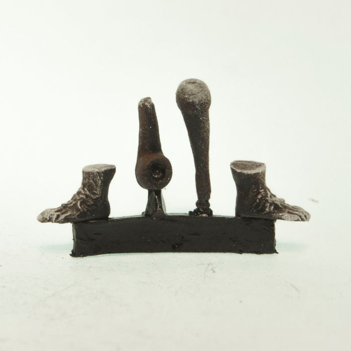 4 small pewter parts attached to a tab. With these parts, some craft clippers, and some superglue, any gnome can be transformed into a halfling! Includes 2 tiny pipes for smoking longbottom leaf (10mm long), and 2 hairy halfling feet (6mm long). Miniature Parts can be used as a disguise, a grisly trophy, to add heroic flair, and for dungeon crafting, to represent rewards and objectives to players of tabletop RPGs, or to modify miniatures to add additional equipment/gear. No base included. Parts are made of 100% lead free pewter. The pictures of the painted miniatures are for inspiration and are only examples. Miniatures come unassembled and unpainted, some filing may be needed to clean up excess flashing, or sprue.