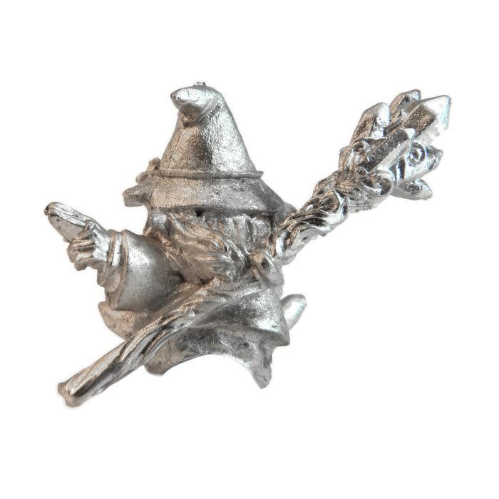 This 20mm tall (12mm from feet to eyes) Gnome Wizard Rider Male has a great amount of detail for dungeon-crawling, RPGs and table top war games. Miniature could be used as a wizard, mage, sorcerer, or warlock. This gnome is equipped with wizard hat, staff, pouch, beard, fireball. This miniature will need a mount (sold separately) or a rock to sit on and is compatible with the following Stonehaven mounts: Goat, Owlverine, Wolf, Flaming Undead Unicorn, Reindeer, Dragonfly, Heron, Ram, Boar, Raptor, and Short Pony. No base included. Figure is made of 100% lead free pewter. The pictures of the painted miniatures are for inspiration and are only examples. Miniatures come unassembled and unpainted, some filing may be needed to clean up excess flashing, or sprue.