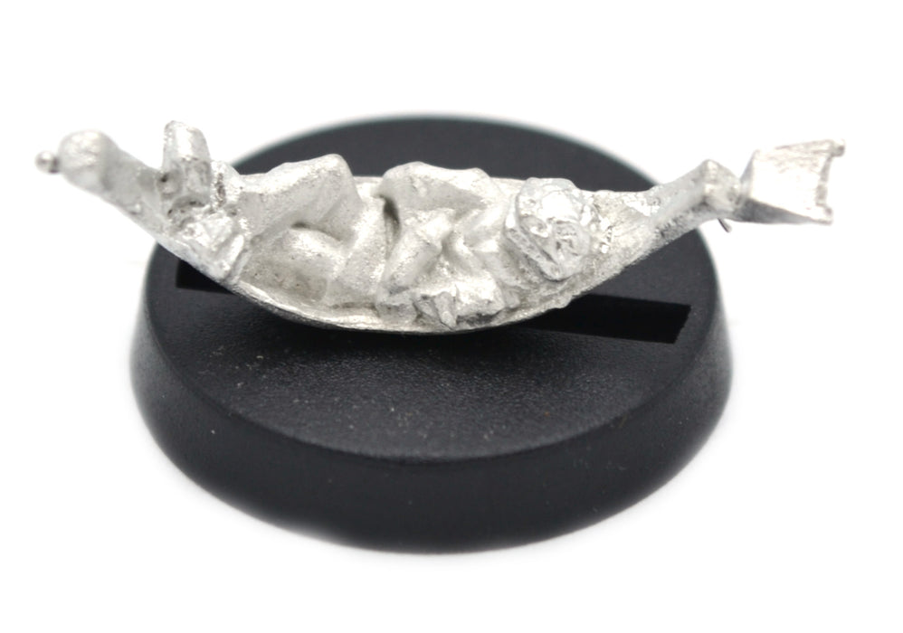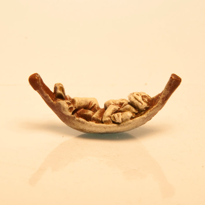 This 21mm long (12mm from feet to eyes) Sleeping Grippli Mahout has a great amount of detail for dungeon-crawling, RPGs and table top war games. Miniature could be used as a sleeping sentry, unconscious prisoner, or a sleeping mahout for the giant elephant. This grippli is equipped with light armor and a hammock. 20mm diameter slotted round plastic base included. Made of 100% lead free pewter. The pictures of the painted miniatures are for inspiration and are only examples. Miniatures come unassembled and unpainted, some filing may be needed to clean up excess flashing, or sprue.