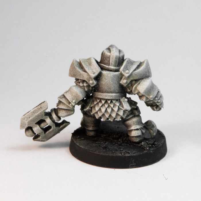 This 22mm tall (19mm from the feet to the eyes) Male Dwarven Undead Elite has a great amount of detail for Dungeon-crawling, RPGs and table top war games. Miniature could be used as a summoned dwarven skeleton, warrior, fighter, necromancer, zombie. This undead dwarf comes equipped with heavy armor and an axe. 25mm diameter slotted round plastic base included. Made of 100% lead free pewter. The pictures of the painted miniatures are for inspiration and are only examples. Miniatures come unassembled and unpainted, some filing may be needed to clean up excess flashing, or sprue.