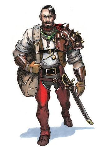- Miniature could be used as a warrior, fighter, bard, spellblade, duskblade, duelist, blademaster, weapons master, rogue. This human comes equipped with a satchel, armored coat, a rapier (sword), and several trinkets.