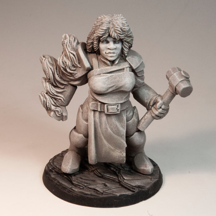 • Miniature could be used as a Giant, Goddess, Statue, Scenery, Blacksmith, Forgemanster, Hephaestus. This Fire Giant is equipped with hammer, light armor, flames.