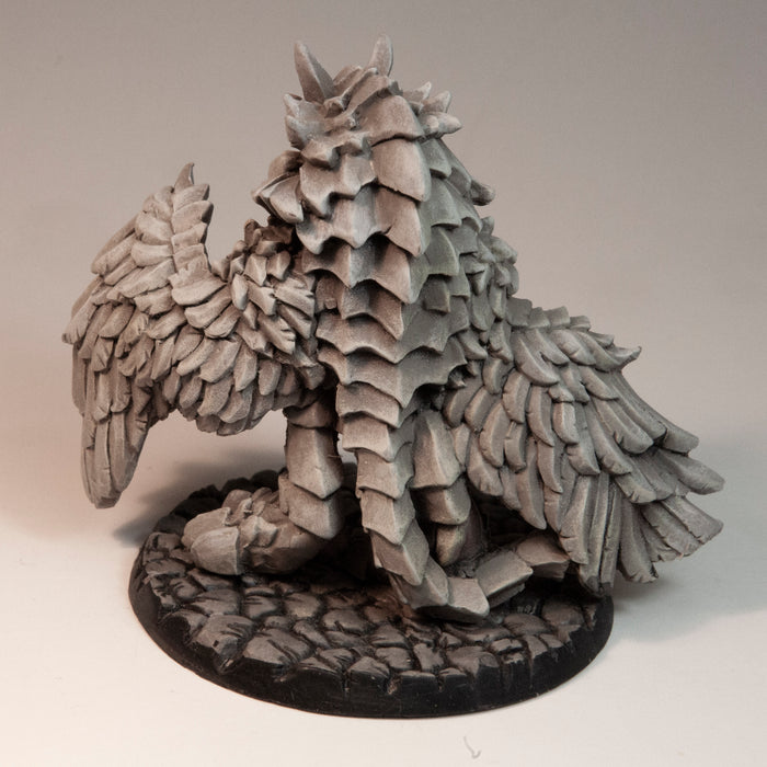 This 66mm tall (54mm from the feet to the eyes) Dire Owl has a great amount of detail for Dungeon-crawling, RPGs and table top war games. Miniature could be used as a mount, owl, alien monstrosity, infected giant beast, monster, bird. This Dire Owl is equipped with chitinous plumage, talons. Cobblestone 65mm Scenic Base included. Miniature is cast in Urethane Resin. The pictures of the painted miniatures are for inspiration and are only examples. Miniatures come unassembled and unpainted, some filing may be needed to clean up excess flashing, or sprue.