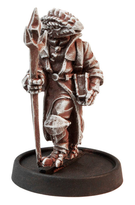 Half-Dragon Wizard figure designed for dungeon-crawling, RPGs and 28mm table top war games. Figure stands 38mm tall (34mm from feet to eyes) and features an incredible amount of detail. Miniature can be used as a Dragonborn, Sorcerer, Warlock, Wizard, Magus, Arcanist. Made of 100% lead free pewter.