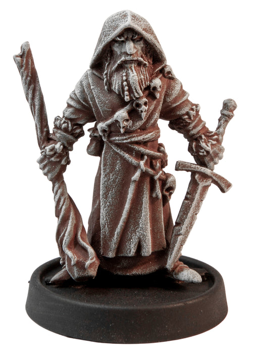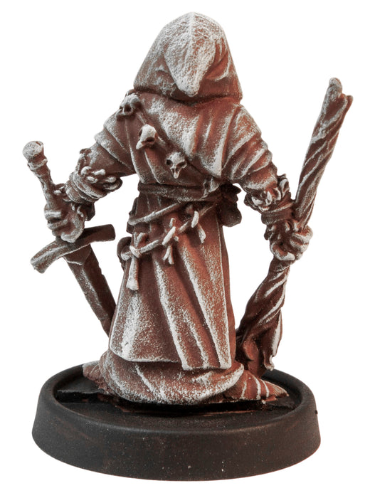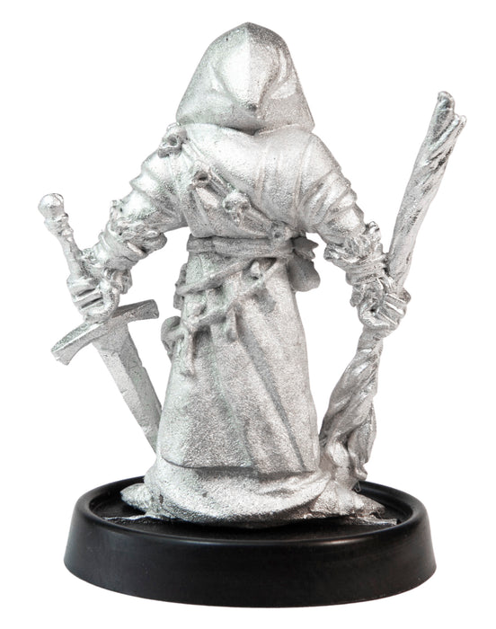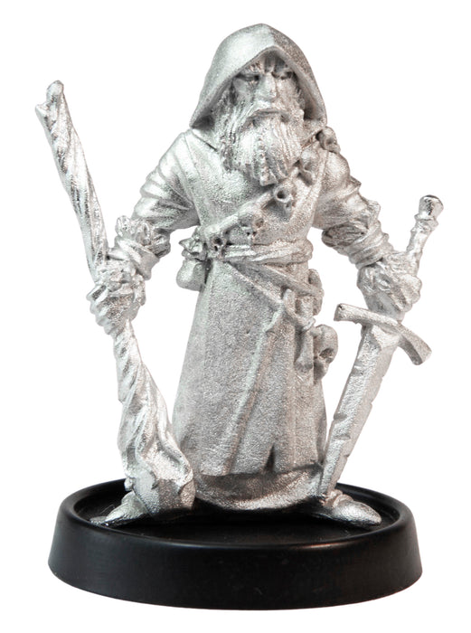Male Human Hedgemage figure designed for dungeon-crawling, RPGs and 28mm table top war games. Figure stands 38mm tall (30mm from feet to eyes) and features an incredible amount of detail. Miniature can be used as a Cleric, Wizard, Magus, Oracle, Summoner, Witch, Arcanist, Occultist, Necromancer. Made of 100% lead free pewter.