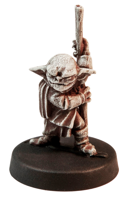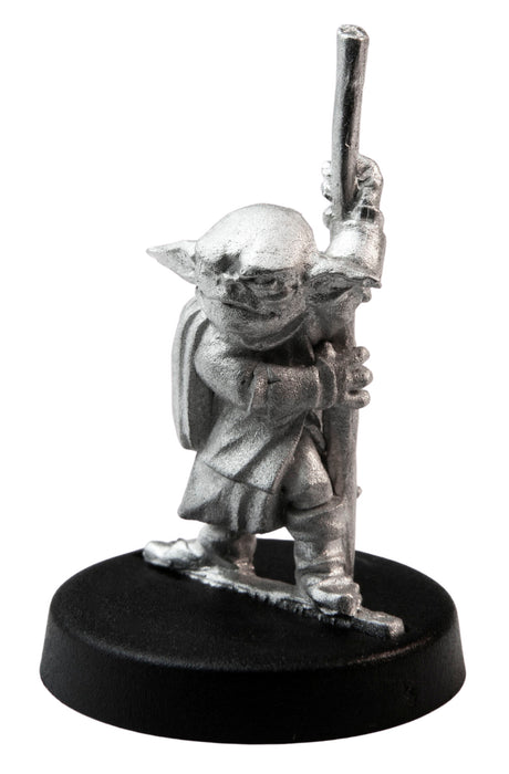 Male Goblin Monk figure designed for dungeon-crawling, RPGs and 28mm table top war games. Figure stands 29mm tall (15mm from feet to eyes) and features an incredible amount of detail. Miniature can be used as a Sorcerer, Magus, Wizard, Monk, Psychic, Ninja. Made of 100% lead free pewter.