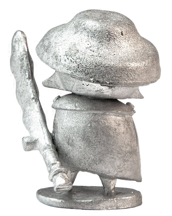 Mushroom with bean blade figure designed for dungeon-crawling, RPGs and 28mm table top war games. Figure stands 25mm tall (18mm from feet to eyes) and features an incredible amount of detail. Miniature can be used as a Mushroom Folk Basic Form. Made of 100% lead free pewter.
