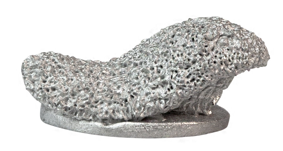 Mossling figure designed for dungeon-crawling, RPGs and 28mm table top war games. Figure stands 22mm tall (10mm from feet to eyes) and features an incredible amount of detail. Miniature can be used as a Companion, Enemy. Made of 100% lead free pewter.