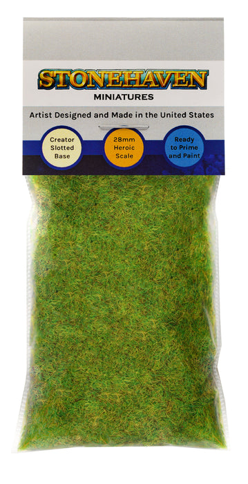 Bring your table top war game elements to life with realistic terrain. This static grass adds lifelike texture and detail to your Stonehaven miniature base or scene. The 2mm length fibers in a blend of vibrant spring grass tones, including light green with subtle hints of dark green, yellow and red. Perfect for spring and early summer base scenery, battle boards and landscapes.