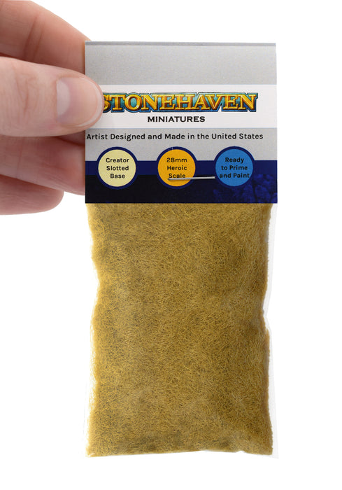 Bring your table top war game elements to life with realistic terrain. This static grass adds lifelike texture and detail to your Stonehaven miniature base or scene. The 2mm length fibers in a warm shade of light brown can be used as straw or dead grass. Perfect for late fall and winter base scenery, battle boards and landscapes scenery, battle boards and landscapes.