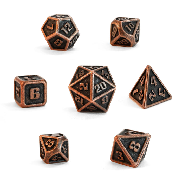 Set of 7 Antique-style Bronze Metal Polyhedral Dice