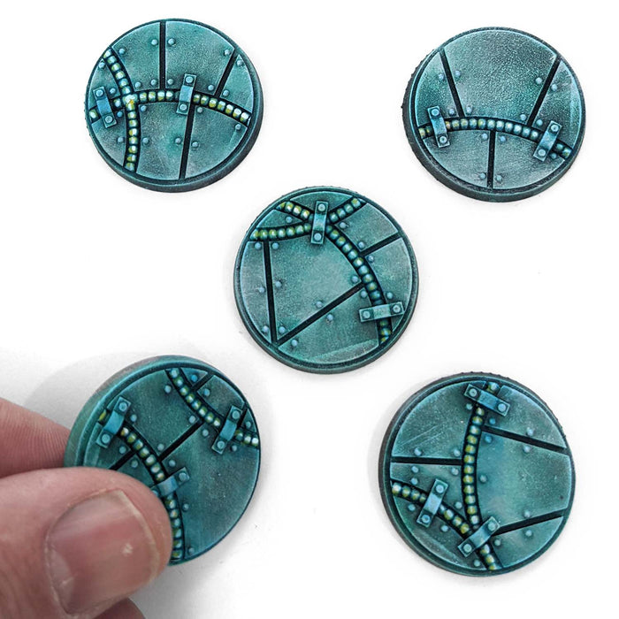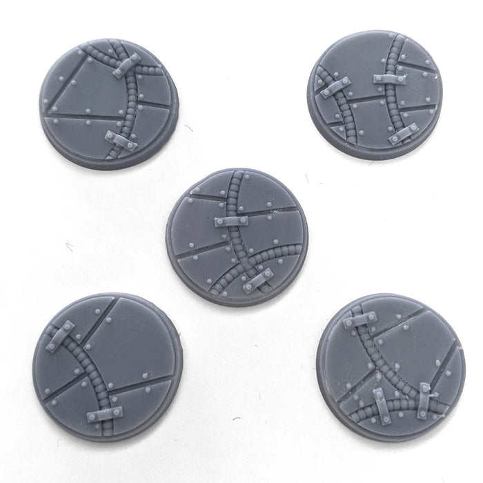 - SCENIC BASE || Various spaceship floor textures, synthetic durable material, designed for 28mm Scale Tabletop War Game Miniatures (Painted Example Photo for reference only, actual bases are grey. Due to resin manufacturing process, actual shape of base may vary slightly from those shown.)