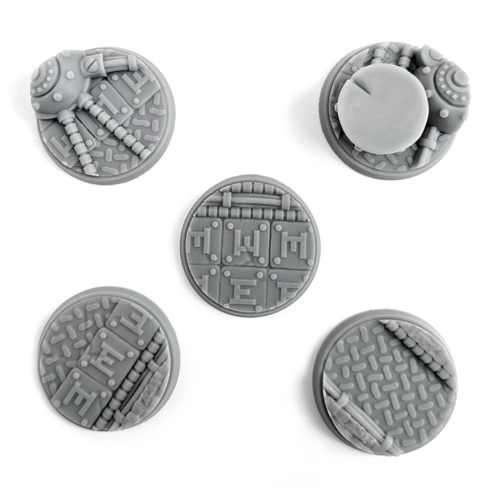Pack of 5 Futuristic Industrial Textured Bases, 32mm (1.26 inches) Diameter