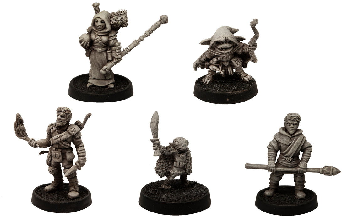 - Miniatures included in this set: Male Human Ranger, Male Goblin, Female Human Sorcerer, Female Grippli Druid and a Human Adept