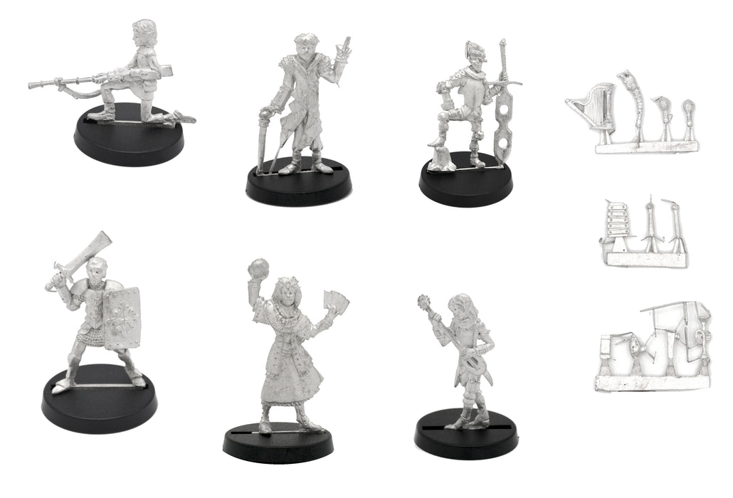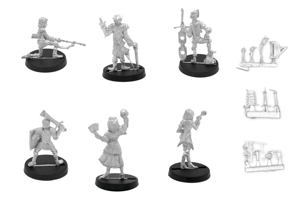 - Miniatures included in this set: Elf Fortune Teller, Elf IllusionisT, Elf Longsword, Elf Bard, Elf Sniper, Elf Foot Soldier, Trumpet, Kazoo, Ocarina, and Harmonica Accessories, Xylophone and Drumsticks Accessories and Harp, Battle Horn, and Maracas Accessories