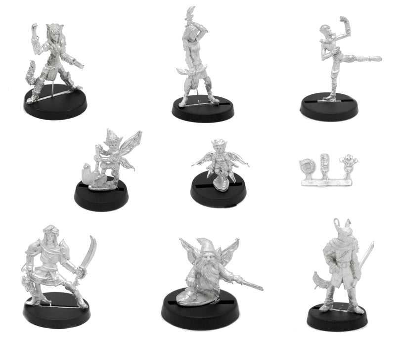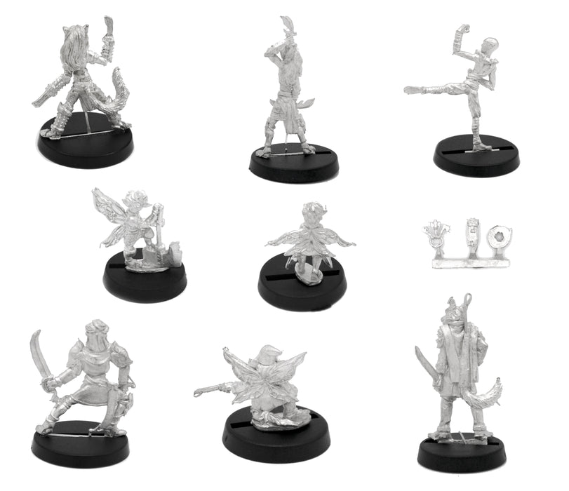 - Miniatures included in this set: Kitsune Assassin , Elf Infiltrator , Elf Thief, Elf Monk , Kitsune Swordsman , Coil of Rope, Thieves Tools, and Key Ring Accessories, Pixie Fighter , Pixie Thief and Pixie Wizard