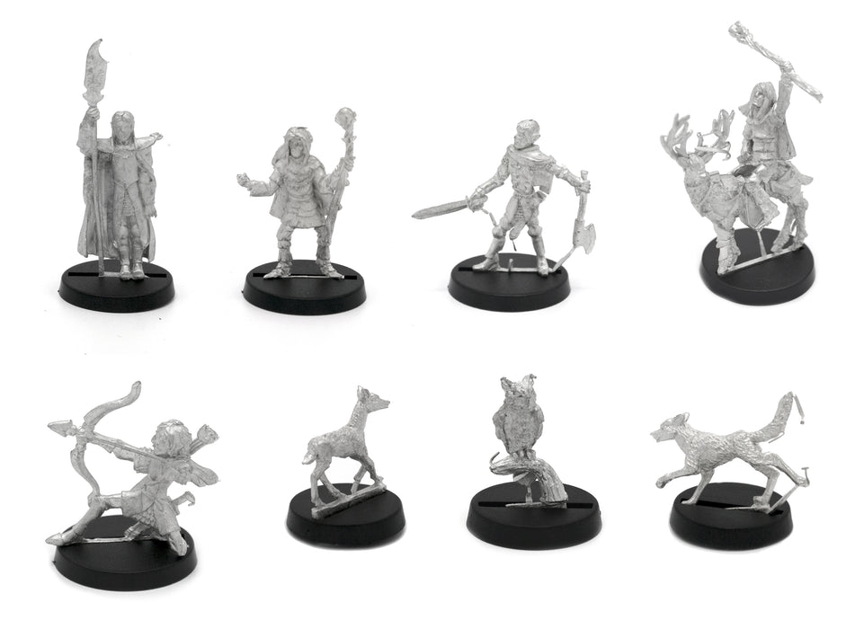 - Miniatures included in this set: Elf Archer, Elf Wizard, Elf Weapons Master, Elf Ceremonial Guard, Elf Wizard Mounted, Stray Dog, Owl and Fawn