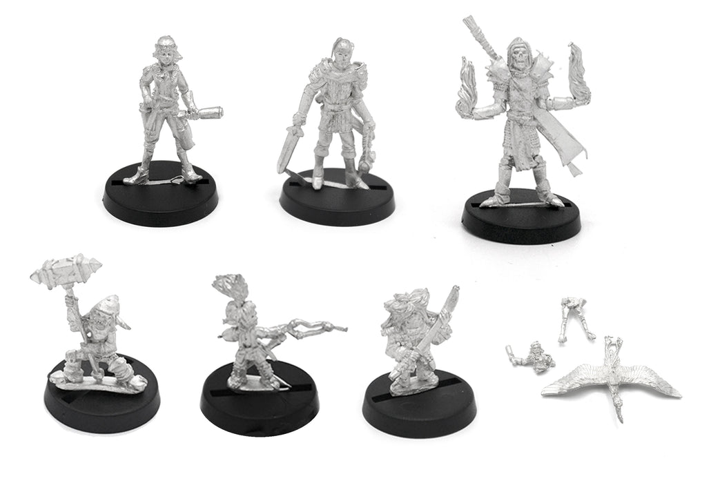 Nomads of the Great Veldt Adventures Kit includes 7 miniatures to lead in any fantasy army. Made of 100% lead free pewter. Each miniature (excluding accessory miniatures) includes a slotted plastic base. The pictures of the painted miniatures are for inspiration and are only examples. Miniatures come unassembled and unpainted, some filing may be needed to clean up excess flashing, or sprue.